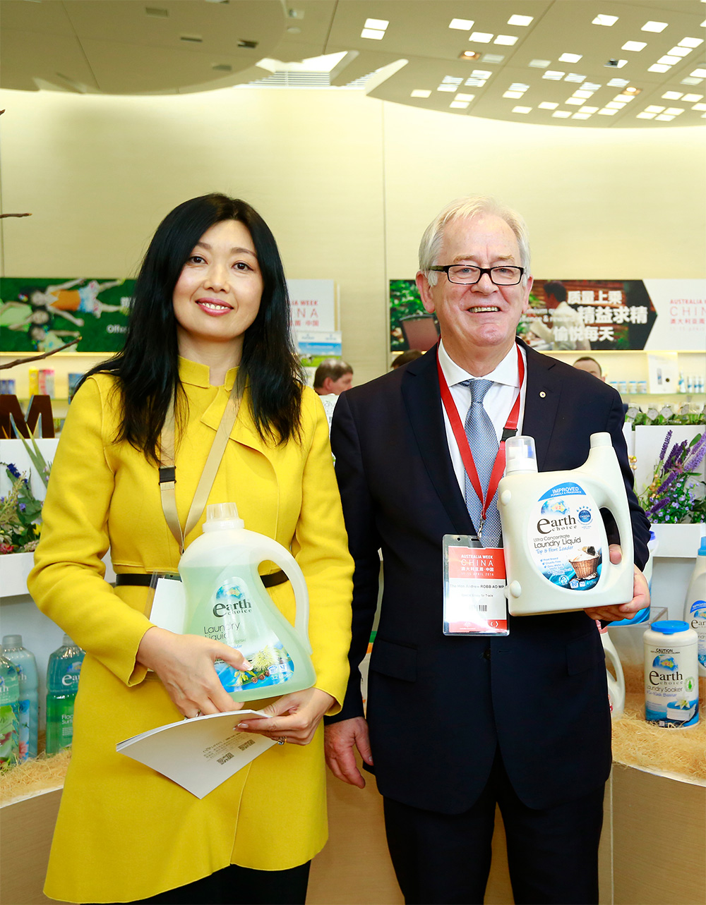 澳大利亚高端优质消费品展,美在澳国际带领所代理的Natures Organics澳诺雅植物洗护及家庭清洁用品与主办方合作参展,将最优质的产品带给中国消费者。澳大利亚前投资贸易部部长,现在中澳贸易特使Andrew Robb特意来到美在澳国际展台前,与美在澳国际领导共同探讨澳洲优质商品在中国的市场发展,并送上美好的祝愿。