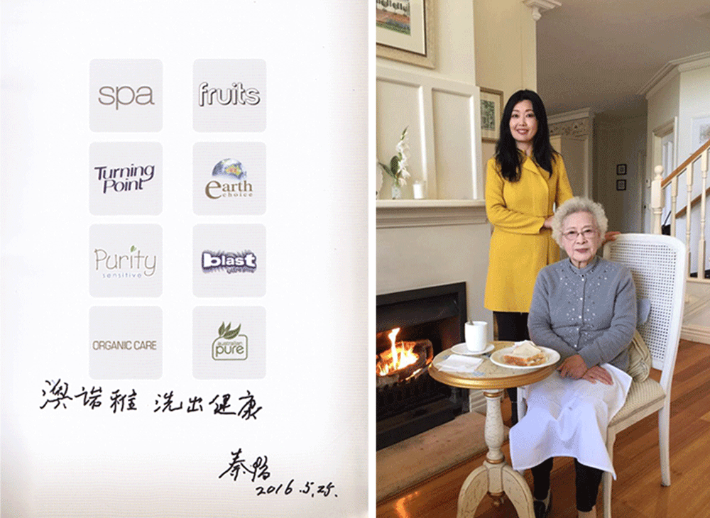 德艺双馨的中国老艺术家秦怡老师在访问澳大利亚墨尔本时,与美在澳国际负责人见面,见面,并为美在澳国际代理的澳大利亚知名的绿色清洁品牌题字。