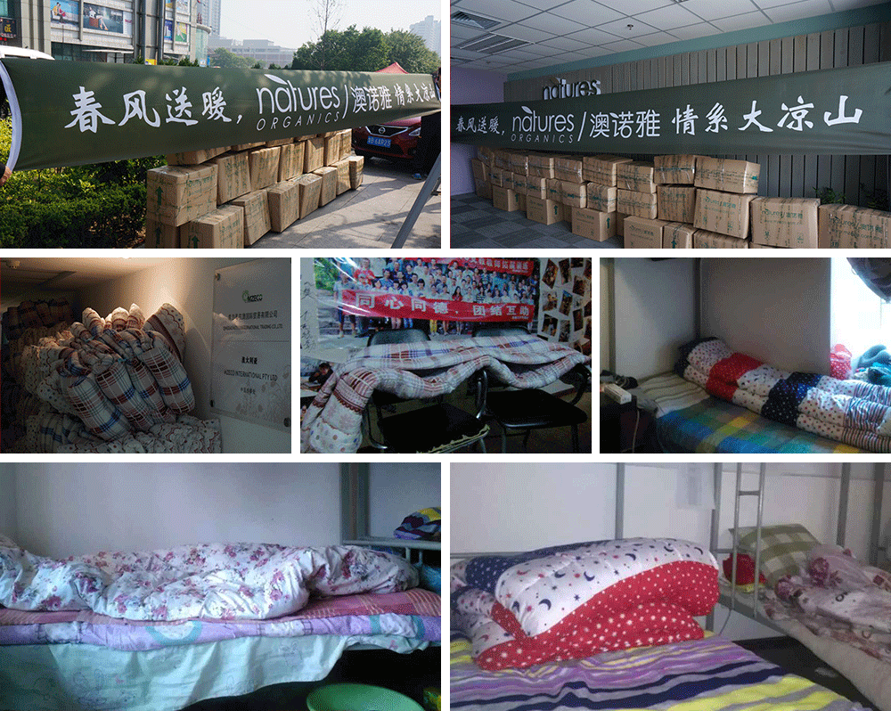 美在澳公司携手大凉山索玛花支教助学联盟志愿者,扶助凉山贫困学生,改善他们在生活方面的条件,营造健康成长的环境,为贫困学生添置所需物品捐赠急需的棉被物资,为大凉山的孩子冬天送去一丝温暖